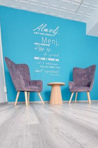 Barátságos érkező tér, ahol a vendégek kényelmesen megérkezhetnek, beszélgethetnek vagy készülődhetnek a foglalkozásra.